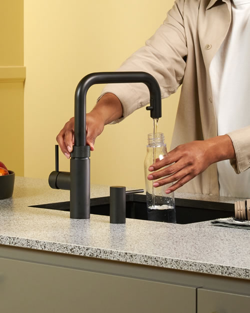 Der beliebteste Quooker-Hahn mit flexiblem Zugauslauf ist jetzt auch im eckigen Design erhältlich – elegant, stilvoll und genauso praktisch wie gewohnt.